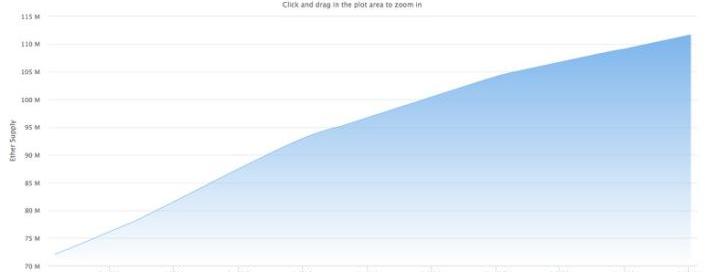 根據以太坊瀏覽器Etherscan披露的ETH流通量統計,截至2020年7月1日,整個以太坊網絡中一共發行了111,583,364.47個ETH,其中39,583,364.47枚ETH是通過挖礦的方式產生。