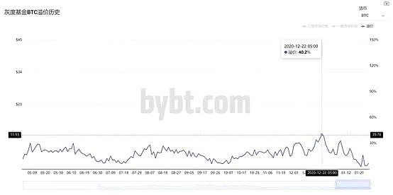 ?灰度GBTC溢價率在12月22日達到40.2%最高隨后溢價率開始大幅下跌并創下溢價率新低。目前GBTC的溢價率僅有7%。
