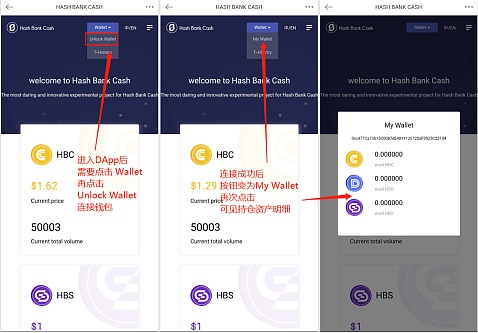 完成以上操作便在CodeBank錢包上完成Heco錢包的創建,通過添加HBC穩定幣,登錄Hash Bank Cash 官方網站,即可參與挖礦。