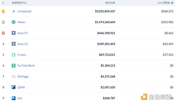 各DeFi借貸平臺借款占比 數據來源:Debank