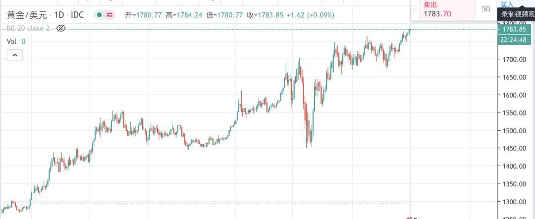 黃金繼續走強,突破1780美元/盎司,正在沖擊近八年高位,市場避險情緒正在發酵,比特幣并未出現跟風聯動的現象,目前比特幣市值不足黃金市值的2%,尚不能把BTC看作避險資產。