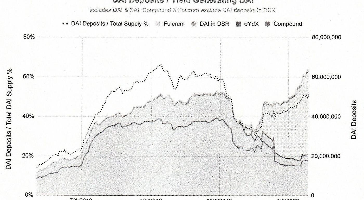 事實證明,在三月份的危機之前,儲蓄率約為8%,穩定費約為0.5%。因此,我的猜想是正確的:保險庫所有者可以獲得報酬,而不是通過出售DAI并成為其保險庫的好管家,而是保留自己鑄造的DAI并將其存放在儲蓄合同中。顯然,在危機到來之前,存在的所有DAI中的很大一部分都屬于儲蓄合同。