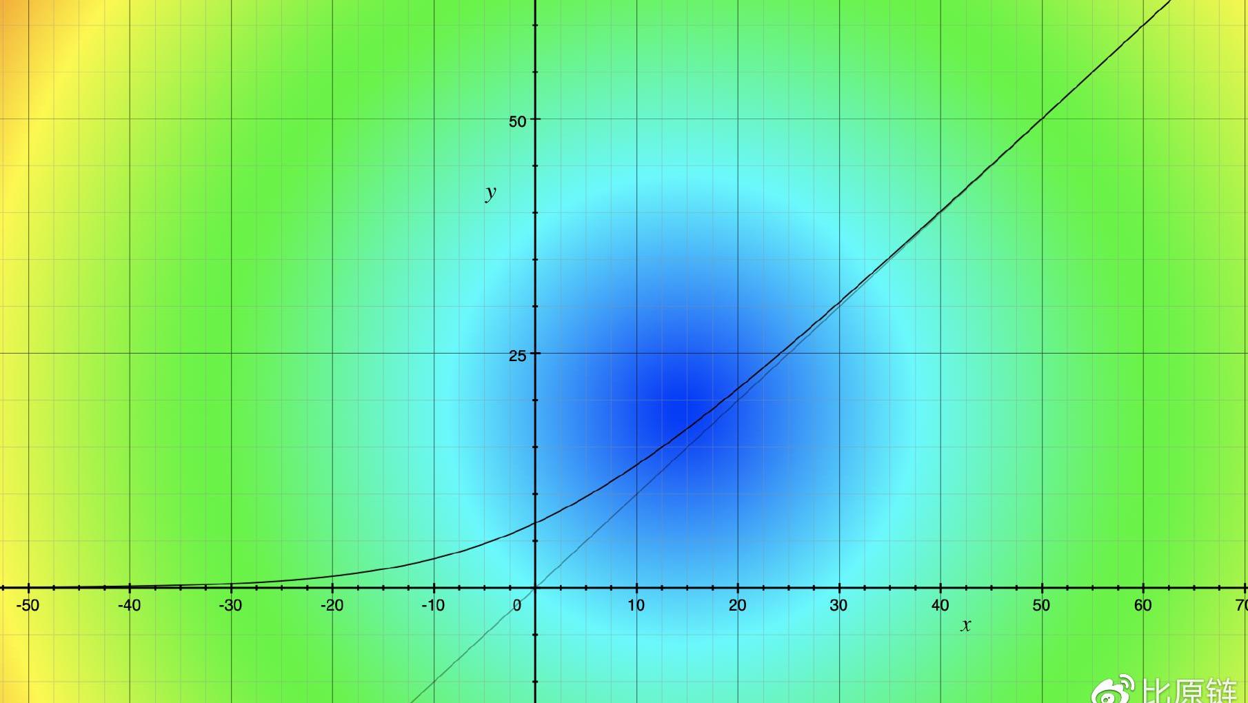 能否將兩個函數各自的優勢結合到一種新函數中——穩定的匯率輸出、極低的交易滑點、可自動調節的場內匯率以及無盡的流動性保護。從圖像直覺上,我們其實在尋找一條在兩條曲線之間的一種曲線,既能夠在中間位置貼近直線,又能夠在尾端向雙曲線一樣無限貼近坐標軸。在幾何數學上,要獲得兩曲線之間的線只需要將二者的表達式相加: