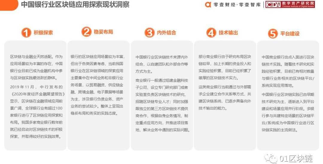 為更直觀呈現中國銀行業在區塊鏈領域的應用實踐歷程和所處階段,01區塊鏈通過對市場公開信息及機構數據進行細致梳理,并與業內人士充分調研交流,以近50家銀行、數百條銀行區塊鏈實踐數據為樣本,編寫了國內首份系統性銀行區塊鏈應用報告——《中國銀行業區塊鏈應用與探索報告》,以期全面展現我國銀行在區塊鏈領域的布局、實踐以及所處階段,為銀行及相關機構開展與區塊鏈探索和實踐提供參考。