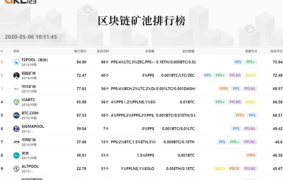 綜合評分排名前十礦池