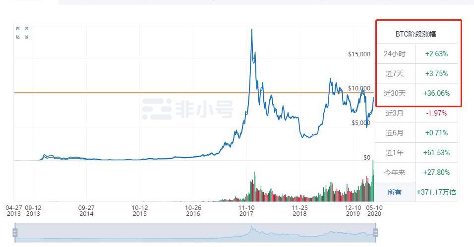 XRP/HKD-4.82%勞動節前BTC一度拉漲至9000美元,一掃312的暴跌陰霾,也因此比特幣在整個4月份的漲幅達到了34%,遠超過了其他資產,進入5月以來,減半牛市似乎蟄伏著伺機而動,BTC在8449-9346美元區間震蕩。我們距離減半只有4天了,那距離牛市還有多遠呢?