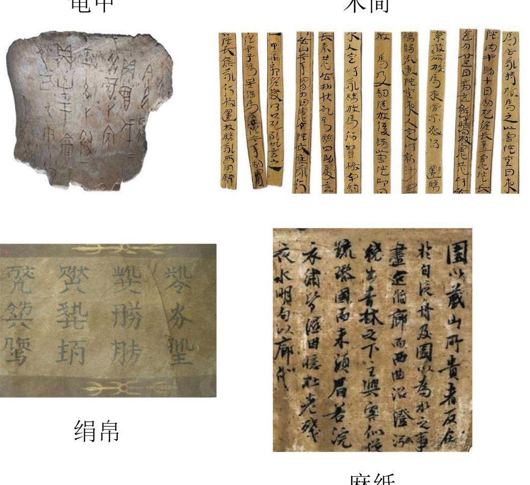 早期人類將文字用石頭刻在巖石上形成“巖畫”;在我國,文字的起源可以上溯到夏朝,而到了商朝則有明確的記載文字的實物——殷墟甲骨,此類甲骨多為龜甲和獸骨;春秋戰國時期,用竹木簡牘作為典籍的主要形式;竹木簡牘太重不利于攜帶和閱讀,人們開始在帛上書寫文字,絲織品雖然輕便但不易于保存;到了東漢公元105年,蔡倫用樹皮、麻頭及敝布、魚網等原料發明了紙張,這是現代紙張的雛形。文字的載體從竹簡玉帛過渡到紙張,讓文化瞬間就繁榮起來,形成了中國燦爛的文明。在西方,起初是在石板或者泥板上記載文字,到了公元前3000年古埃及人開始使用“紙莎草”作為書寫載體,并將很多“紙莎草”捆綁起來形成卷軸;公元3到13世紀,歐洲開始流行用羊皮紙來書寫文字,這種羊皮紙更像是書頁便于裝訂成冊。中國的造紙術傳到西方后,造就了西方的文藝復興、啟蒙運動以及宗教革命等一系列重大的變革,成就了西方文明。