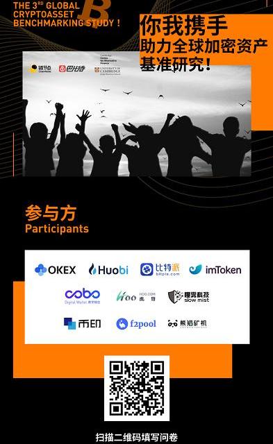 今年4月,CCAF第三次全球加密資產基準研究再次開啟,巴比特和鏈節點如期應邀,同時還迎來了一大波小伙伴的參與,他們分別是OKEX、火幣、比特派、Cobo、虎符、慢霧科技、幣印、魚池和熊貓礦機。