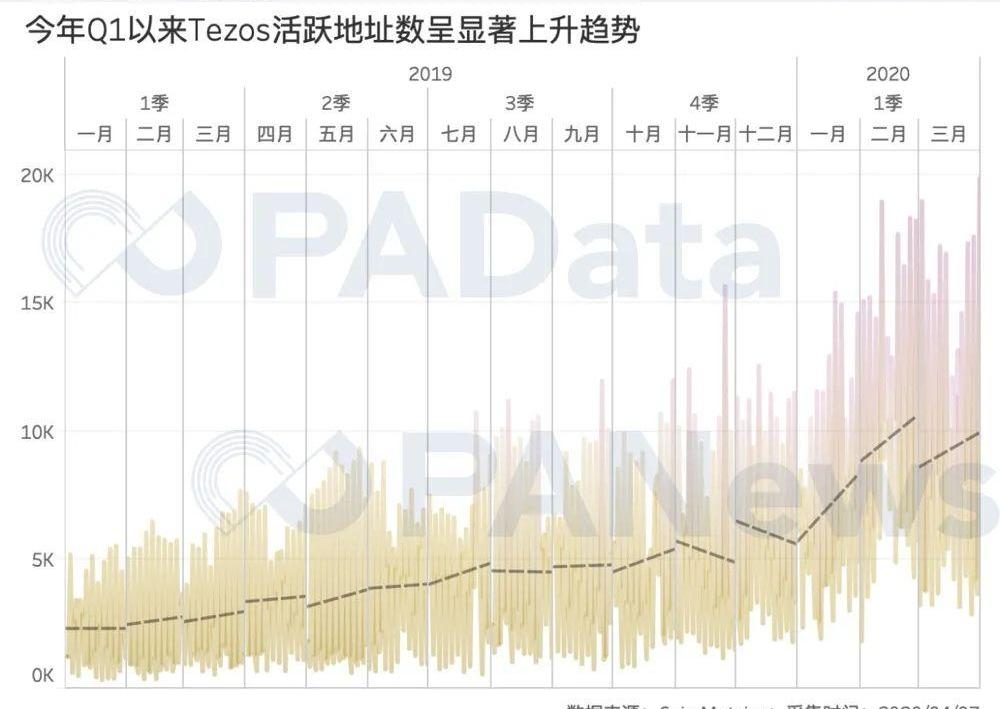 這種用戶基本面的改善在Tezos網絡上表現的更明顯,根據CoinMetrics的統計,Tezos自今年一月以來,每日活躍地址數呈明顯的上升趨勢。