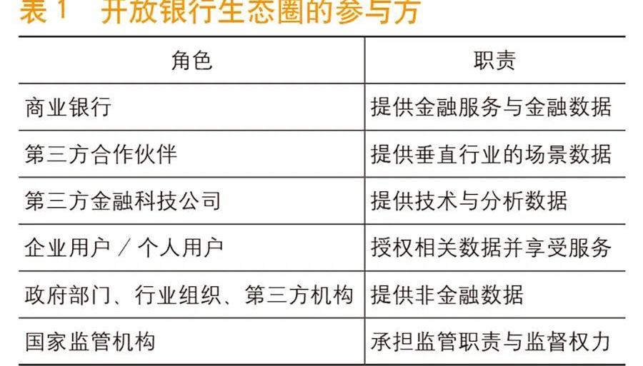 參與開放銀行生態圈的市場主體眾多,如表1所示,生態圈的建設需要協調各方利益,并嚴格保護各方擁有的數據資產。