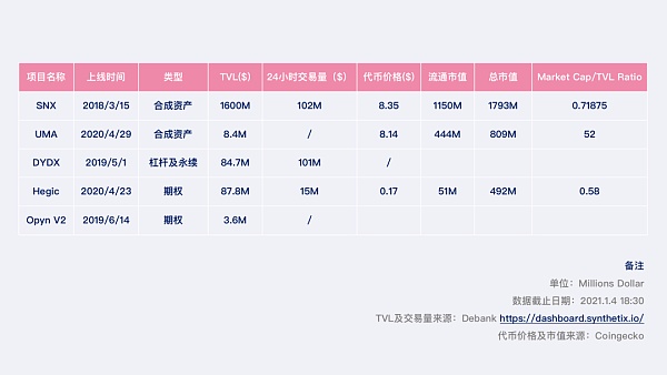 現階段,衍生品領域主要包含合成資產、合約(杠桿及永續)、期權三個垂直種類。