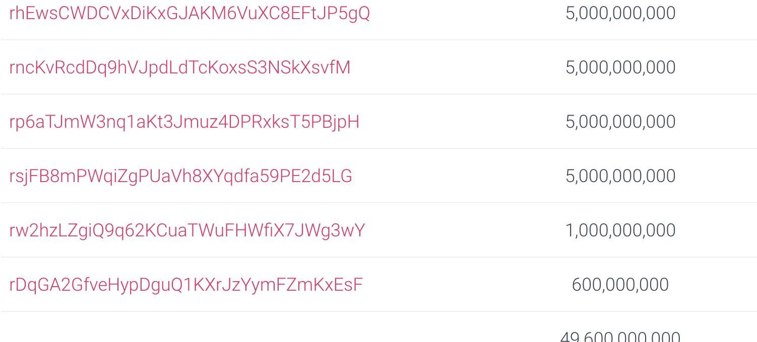 當Ripple首次托管550億XRP時,它創建了11個不同的賬戶,每個賬戶擁有50億XRP。在撰寫本文時,其中5個初始賬戶中托管XRP數量已為0,同時創建了6個新賬戶。