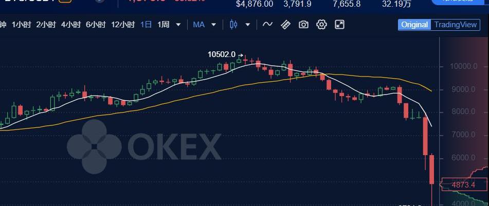 1900/1/1 0:00:003月12日,BTC連日急劇下跌,由8000美元一路下探至3800美元附近,并帶動數字貨幣市場全面下挫。在兩天時間內,加密貨幣市場總市值萎縮近半,由2300億美元一路跌至1300億美元.