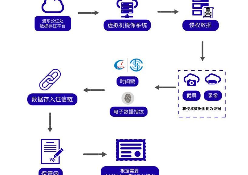 上海市浦東公證處數據存證平臺是一套區塊鏈+公證業務數字化的業務系統。該系統通過互聯網為企業及有需要的自然人提供數據存證、遠程取證和搖號抽獎服務,旨在幫助用戶在商務、知識產權等諸多領域的證據存儲、固定及取證工作。通過本平臺提供的各項在線功能,滿足證據真實性、合法性、相關性的要求,同步解決證據信息保管難的問題。