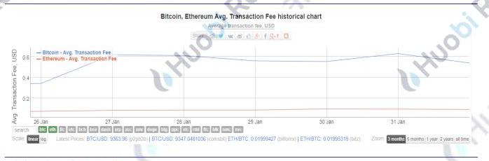 本周比特幣礦工費上漲、以太坊礦工費上漲。截止2020年2月2日,比特幣當日平均每筆礦工費為0.541USD,環比上漲62.46%,以太坊每筆礦工費為0.0917USD,環比上漲14.29%。