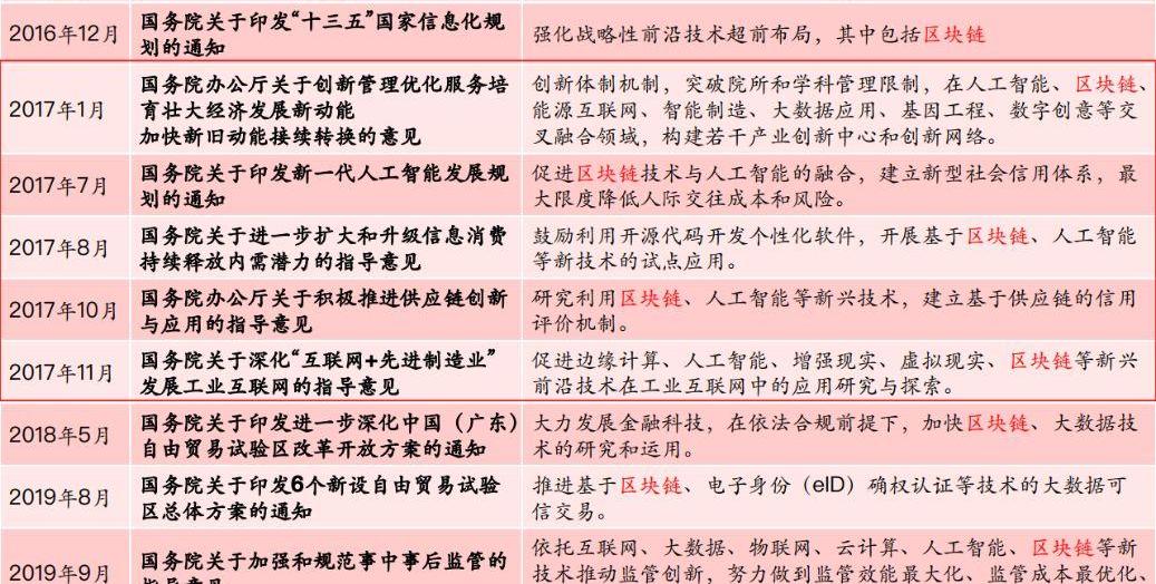 事實上,不只是2020年中央一號文件,近幾年來中央各部委對于發展區塊鏈產業扶持政策的出臺頻率一直在加快。