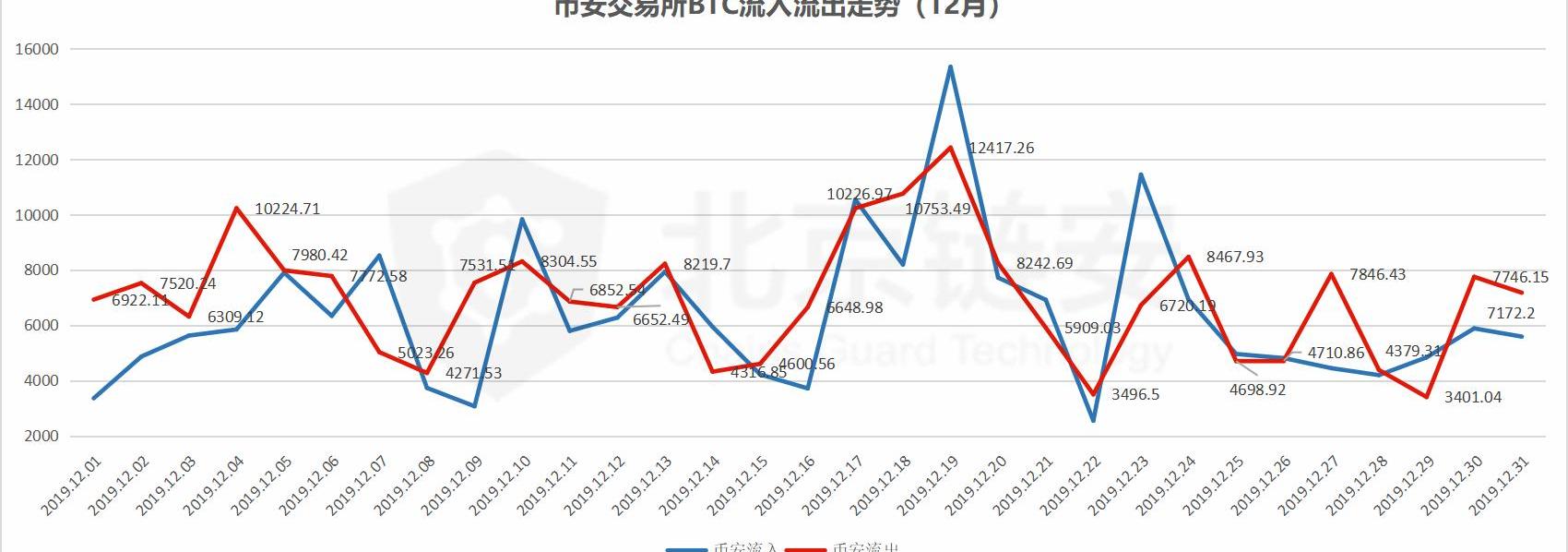 從11月數據來看,幣安交易所流入219640.20BTC,流出215873.86BTC,凈流入3766.34BTC,近2個月其比特幣流出總量相當,但是12月比特幣流入量明顯下降,從而使得幣安交易所在12月的比特幣凈流出量較大。