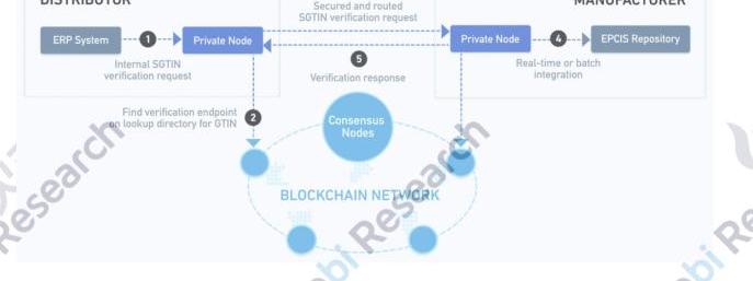 MediLedger項目通過區塊鏈網絡以滿足DSCSA的要求。制藥商、批發商和醫院等藥品供應鏈上的節點都能夠在區塊鏈上記錄藥品運送數據,藥店和醫院可以從全自動及時的真實響應中受益,而無需手動處理涉及電話和電子郵件的過程,藥商也能夠安全地請求并響應藥品的驗證請求。在藥品運送過程的每個步驟,區塊鏈網絡都能證明藥品的原產地和真實性,使得藥品盜竊和以假換真變得異常困難。同時也只有被授權的公司能夠將產品收錄進產品目錄中。