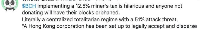 $BCH實施12.5%的礦工稅很可笑,任何不捐贈的人都將被孤塊處理。
