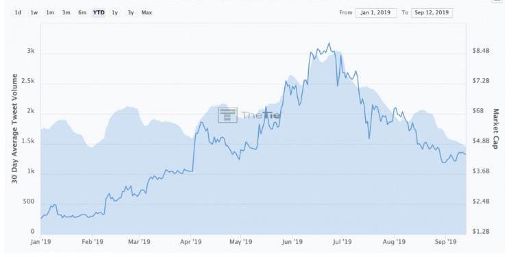 在這一案例中,一個很有意思的發現是,萊特幣的市值和與其相關的推文量之間存在相關性。它清楚地表明,“減半”引發的興奮如何推動了價格上漲,但是從技術的角度來看,“減半”本身并未在價格圖表中得到反映。