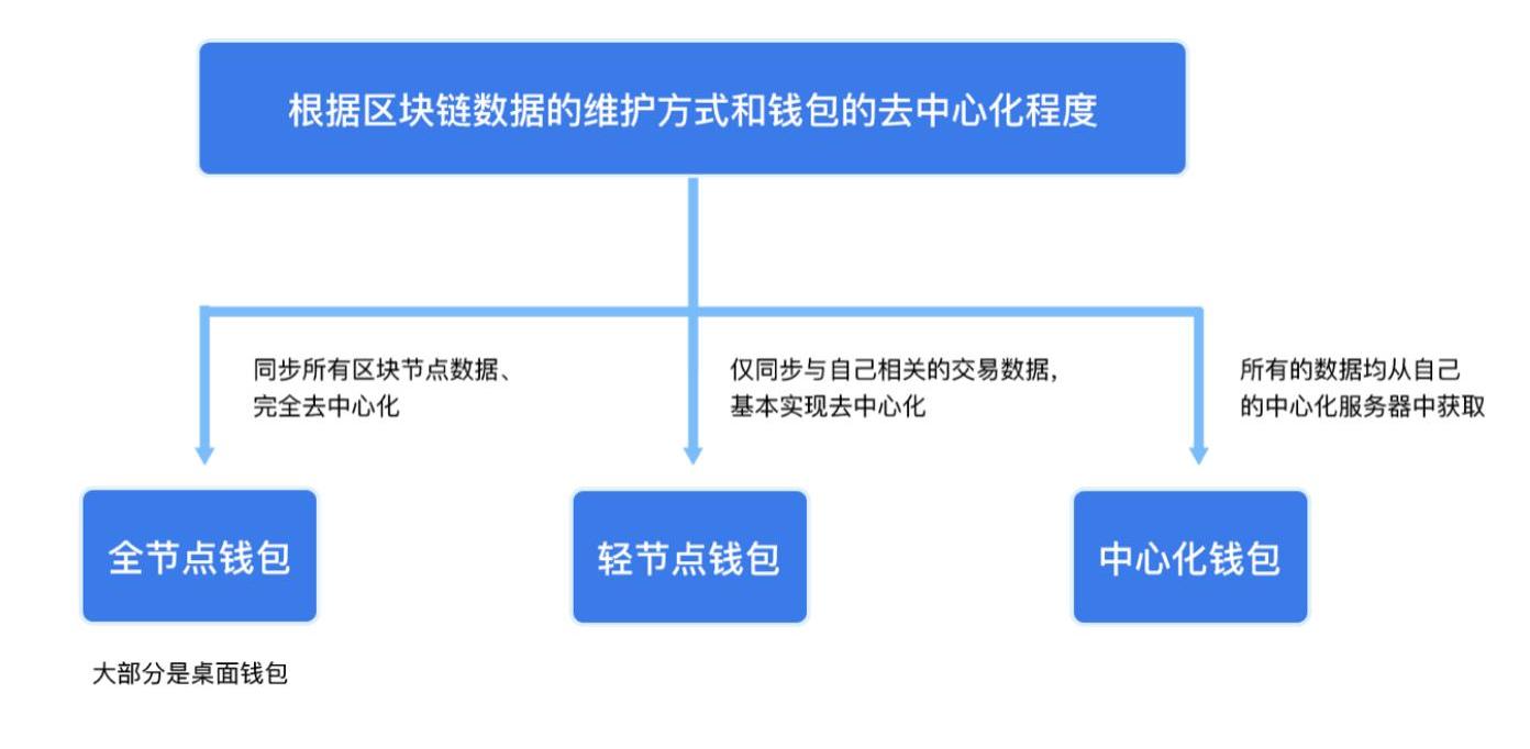 根據錢包的去中心化程度又可將錢包分為全節點錢包、輕節點錢包、中心化錢包。