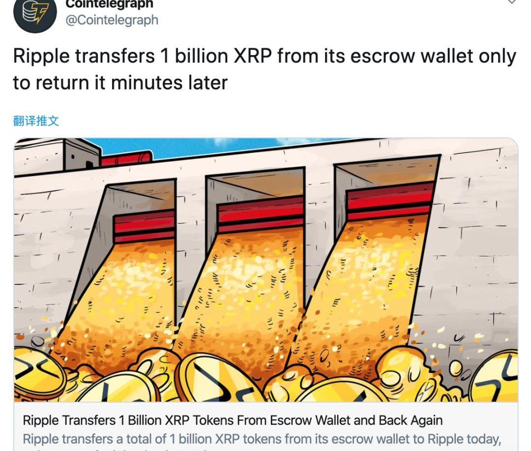 Cointelegraph報道,瑞波托管錢包前幾日解鎖的10億枚XRP在當日解鎖后的7分鐘通過三筆轉賬將這些代幣重新流入進托管錢包。