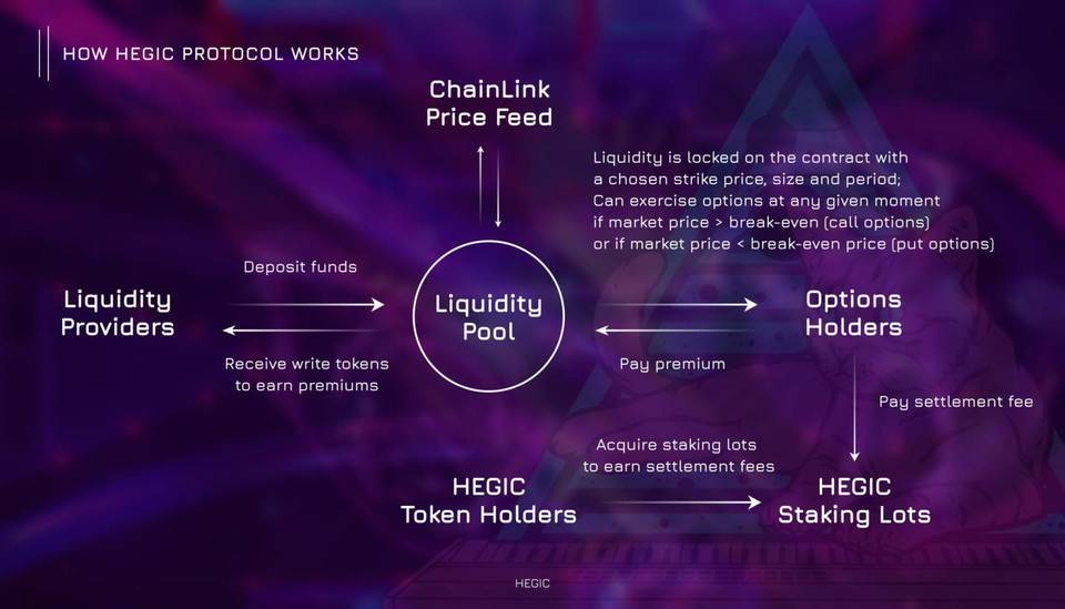 Hegic 有兩個池,以 WBTC 和 ETH 作為抵押品。每個池都對應相應的標的資產。通過 WBTC 和 ETH 購買和結算期權。