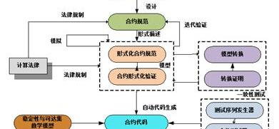 這個框架中,主要融合了三個方面技術,一是傳統軟件工程的理論方法,形式化方法是合約進行確定性高級別驗證的有效手段,通過形式化語言把合約中的概念、判斷、推理轉化成智能合約模型,可以消除自然語言的歧義性、不通用性,進而采用形式化工具對智能合約建模、分析和驗證,最后自動生成驗證過的合約代碼這一周期過程;二是合約需要參與方的共同認定并盡可能智能化,合約代碼和文本需要保證一致的一致性測試性,并需要區塊鏈分布式機制保證其代碼和執行的不可更改和可信性,采用自然語言識別、認知理論和機器學習方法盡可能使復雜契約規則能夠準確地自動轉換為智能合約代碼,同時,智能合約生產過程必須更為智能,更容易為用戶理解、編寫、部署和執行監管;三是智能合約需要法律層面的規制,計算法律研究如何使用計算機技術以電子媒介的方式來實現對法律、法規、合同、章程等法律文件的表達和自動執行,保障通過計算機代碼所設定的規則與現實世界中的法定規則保持相一致。此外,描述合約交易實體間復雜耦合作用,體現價值的變化和轉移也是很有意義的,可采用數學方法分析對系統穩定性和可達集進行計算分析,指導智能合約的自動代碼生成。同時,提供系列化軟件工具來支持智能合約的全生命周期的服務產生、組合應用、驗證、部署和運維。