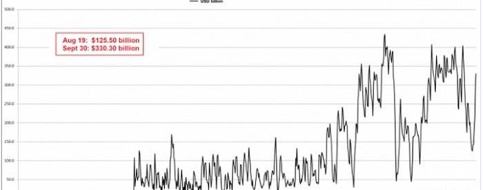 上圖:在本文撰寫時的前一個月時間里,美國財政部在美聯儲的一般賬戶里的資金量已經出現了明顯增長。