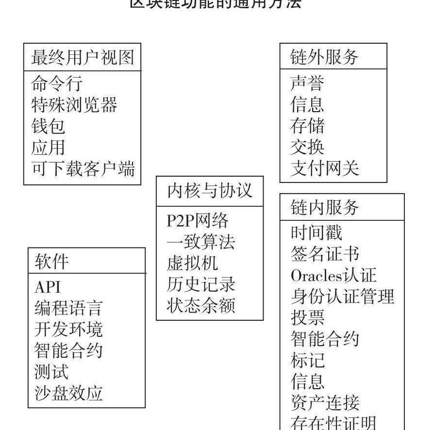 在具體應用的時候,可以采取多種形式。比如,區塊鏈可以視為信用中心、交易媒介、安全通道、去中心化功能等。