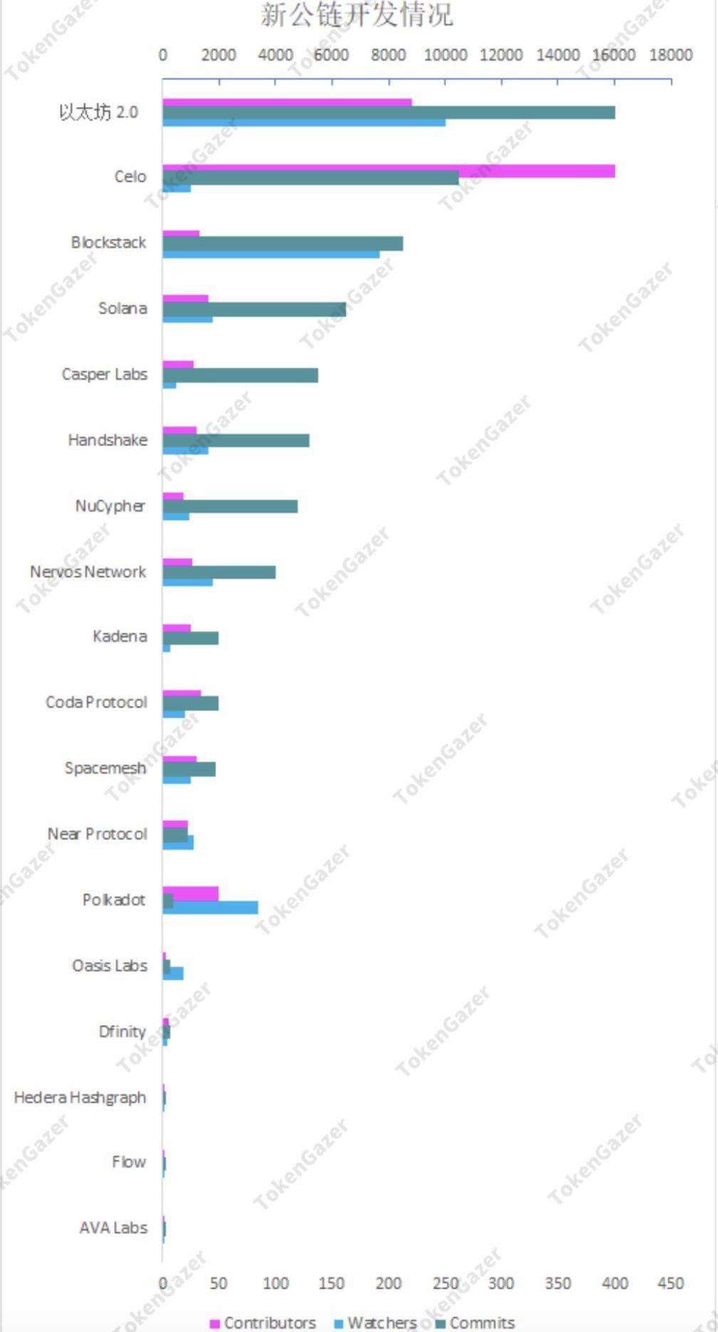 開發社區對公鏈而言是非常重要的,我們通過項目在Github開發者社區的數據對比了這些項目的開發情況和在開發者社區的影響力。如上所示,以太坊2.0在所有以上公鏈中是代碼量最多、最受關注的項目,Contributors的數量也僅次于Celo。由此可見,從開發的角度,以太坊2.0在這些項目中具備較強的競爭力。需要注意的是,并不是所有的GitHub存儲庫都是公開的,例如Hedera和Dfinity等,這也是它們Commits如此之低的原因之一。