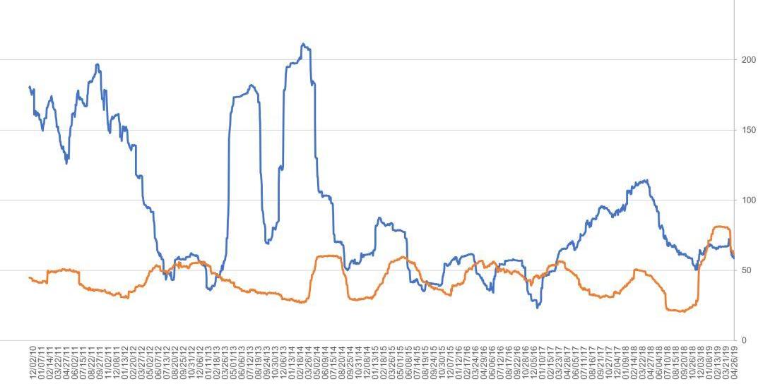 圖2:比特幣和天然氣年化波動率走勢
