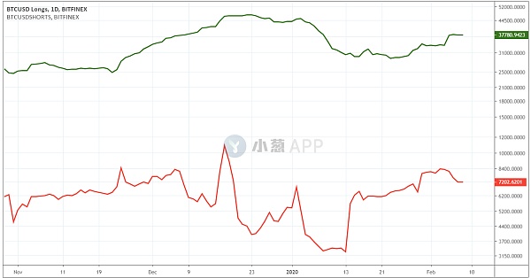 Bitfinex比特幣合約多空持倉數據由交易所實時更新,因此與每周延后更新的CFTC持倉報告相比,Bitfinex交易所持倉數據更能反映即時的市場散戶多空情緒變化。