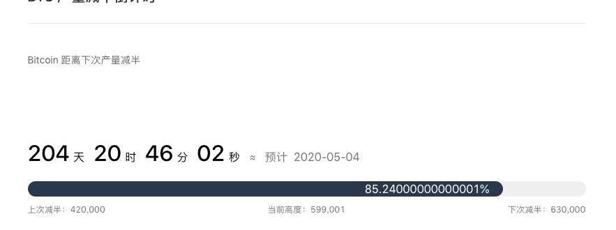 根據標準共識減半倒計時指數顯示,BTC目前區塊高度為599,001,距離下次減半仍有204天。BTC實現減半利好預期還需要一定時間,但投資者需關注BTC減半時間,當下次減半臨近的時候,BTC價格將再次進入快速上漲周期。