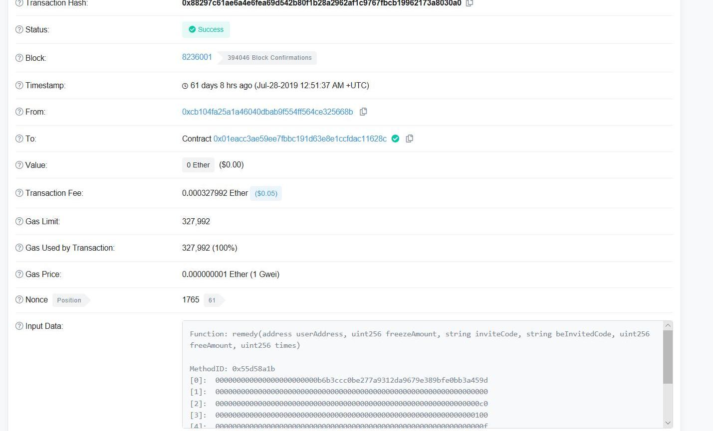 通過鏈上記錄,我們發現項目方已于2019年7月28日通過closeAct關閉了該接口。通過成都鏈安Beosin-AML系統分析項目方所有的交易記錄,我們進一步分析是否已經存在攻擊者插入投注數據成功的情況。通過分析發現,該漏洞已被嚴重濫用。從十天前到現在為止,陸續有賬戶嘗試調用remedy()接口來插入投注數據,不過由于該操作已被關閉,導致插入數據失敗,可以看到插入金額都是幾萬ETH。