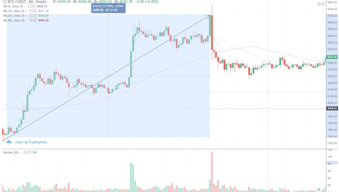 BTC:BTC承壓下降,壓力位在$8,300一線,短期有一定反彈需求。