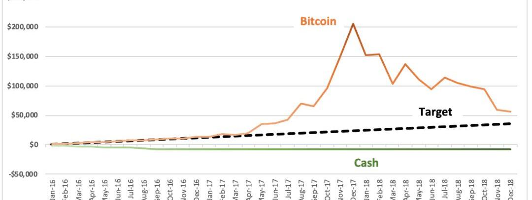 我的重點是證明,使用一種自律的策略,逐步在比特幣等高回報高風險資產中建立頭寸,并在此過程中可能獲得一些利潤,是有好處的。