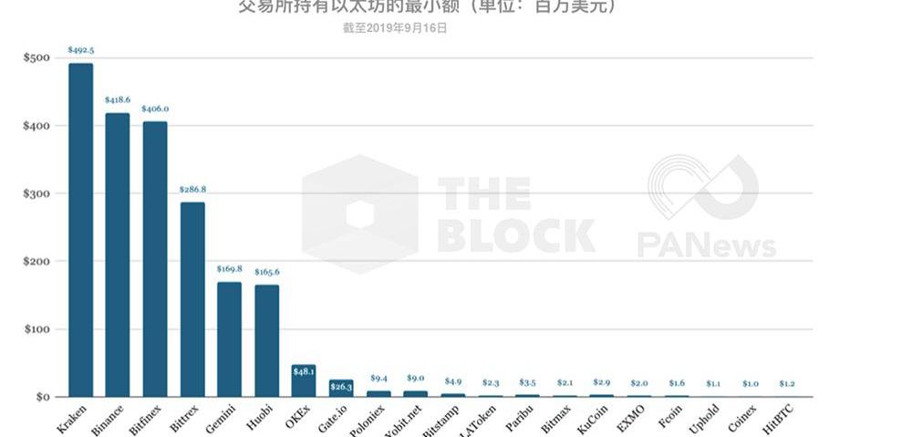 以太坊持有量方面,Kraken排在第一,幣安和Bitfinex緊隨其后。這三家交易所共持有占總供應量6.3%左右的以太坊。