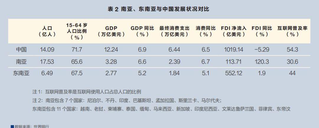 龐大而年輕的人口、制造業的飛速發展,是南亞和東南亞兩個地區的巨大優勢。另外,由于互聯網人口數量巨大,起步時間較晚,這些國家跨過了PC互聯網的發展階段,直接進入了移動互聯網階段,基于移動互聯網的很多產業快速成型,經濟發展及轉型成本很低。