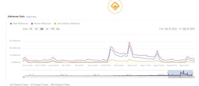 大多數法定貨幣支持的穩定幣網絡并沒有按照預期的那樣獲得增長,但?DAI完全不一樣,其網絡的增長速度非常快,下圖展示了DAI網絡地址統計分析結果: