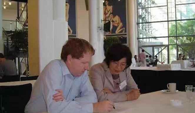 王:作報告時我愛人有一些錄像,但報告一結束,許多密碼專家把我給包圍了,現代密碼學的奠基人之一沙米爾等人都過來向我表示祝賀,人太多把我愛人擠到外面去了。這也成為我愛人很遺憾的一件事。當時場面太熱烈他也蒙了,都不知道去拍照錄像了。不過那年美密會我還是有幾張珍貴照片留下,其中一張是我正在聊天,被惠特菲爾德·迪菲等拉過去拍了一張照片。雖然當時沒有留下很多的影像,但是后來ArjenK.Lenstra對這個場面進行了描述“從上世紀九十年代初起,我參加過幾乎所有在國際上最重要的密碼學會議,但我從沒有經歷過像今年會上的盛況;當王教授陳述其報告的時候,在場聆聽報告的人們彼此相望,幾乎不相信王教授的驚人發現,然而在她的報告結束后,全場立刻起立給王教授報以長久而熱烈的掌聲,人們擁向講臺向她表示衷心的祝賀,她帶去的報告材料被一搶而光。那的確是個令人難以忘懷的時刻。”