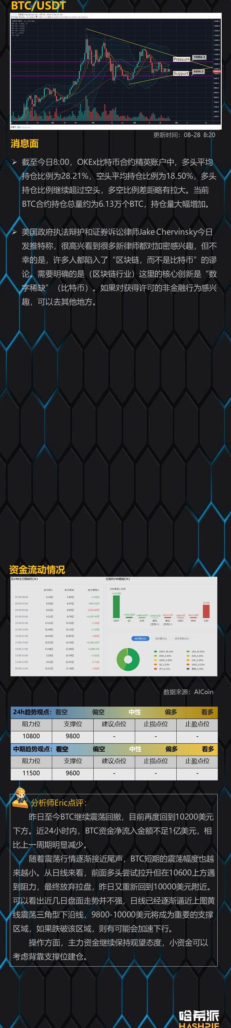 BTC昨晚震蕩上漲至11500美元,隨后下跌至11200美元處獲得支撐。根據火幣交割合約數據,BTC當季合約成交額較昨日繼續減少,持倉量出現小幅增長,精英多頭占比穩定,當季合約保持較大幅度的正溢價。BTC目前在112000美元上方做窄幅盤整,部分幣種出現了前日大跌的大幅度價格修復,其中LINK創下新高。市場整體多頭情緒仍然濃厚。
