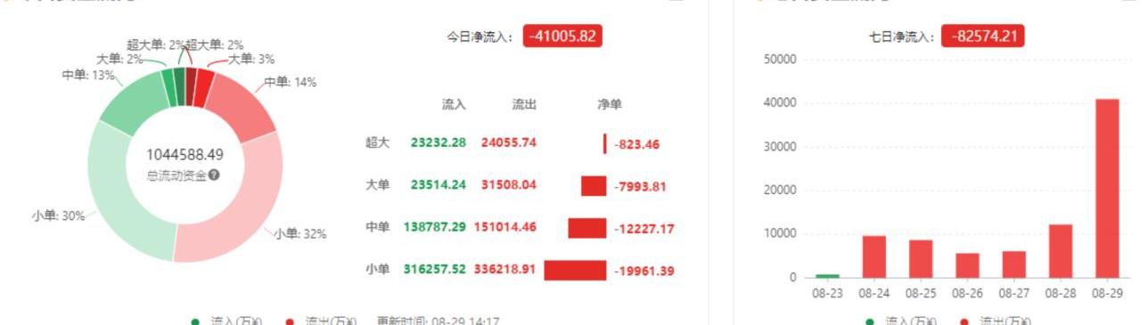 截至14時,EOS的今日資金凈流出41005.82萬元,相對昨日明顯增加。其中,超大單凈流出823.46萬元,大單凈流出7993.81元,中單凈流出12227.17萬元,小單凈流出19961.39萬元。市場以小單中單減倉居多。