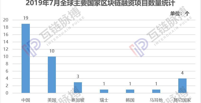 互鏈脈搏研究院統計數據顯示,在7月份的39筆融資事件中,中國融資項目有19筆,數量仍然位居全球之冠,融資總金額約為3.55億元,環比6月份增長了3.4倍。美國緊隨其后,斬獲了10筆融資,但融資金額高于中國市場,達到了4.86億元。