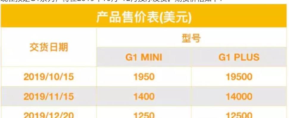 公開資料可見,G1MINI算力為50Gps,G1PLUS算力為500Gps。交貨時間不同售價也不同,前者最高售價1950美元,后者更是達到了驚人的19500美元。