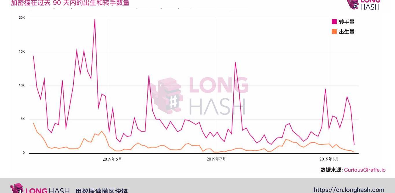 貓有九條命,而加密貓看起來至少有兩條。雖然2018年的熊市扼殺了許多競爭幣和dApp,但加密貓幸存下來了。今天—在該項目首次推出近兩年后—平均每天“出生”的新貓咪仍然超過1,000只,每天有幾千只加密貓被轉手,每天還會完成數百筆拍賣。