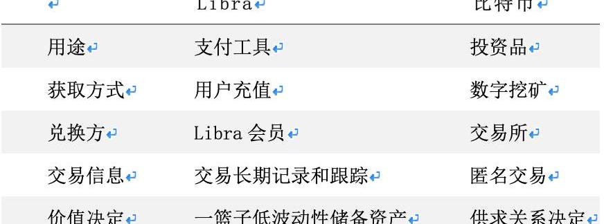 表1Libra與比特幣對比