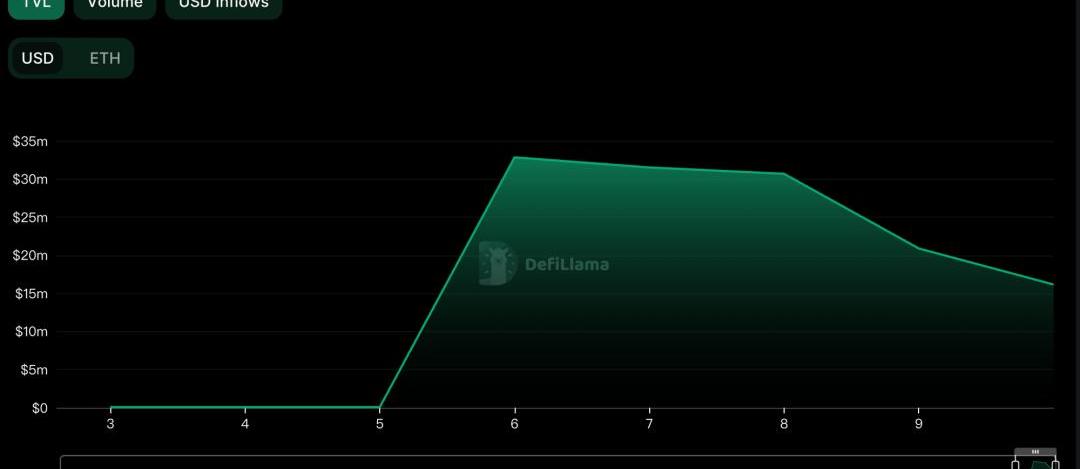 同時我們從DefiLlama的TVL變化情況來看,可以看出,其TVL在5.6-5.8日時達到了巔峰3kw美元,隨后回落到1.6-2kw美元區間。