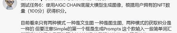 首先DC君認真閱讀了官方給到的測試指南,第一階段測試為AI能力調用測試,測試目標分為兩種。這次開放的就是第一類測試目標“測試小模型創建,Diffusion圖片生成相關交互能力”。這些文字怪深奧的,不過唯一最需要知道的就是做這些任務可以獲取積分,積分可以用于兌換主網token,是一個熱門賽道值得一擼的大毛。