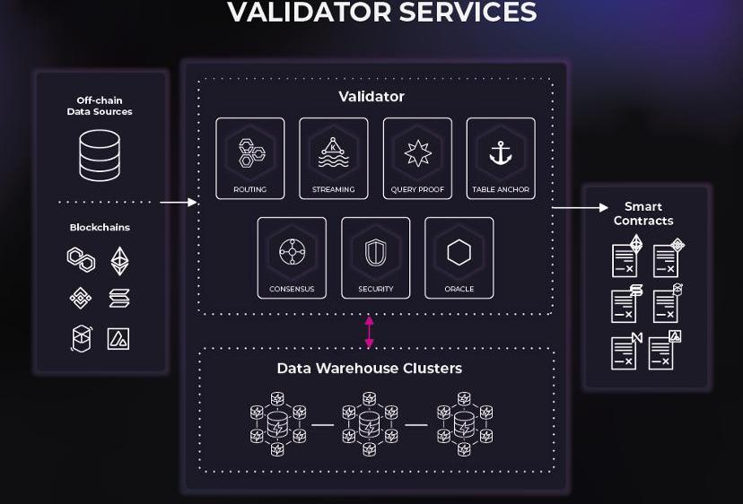 SpaceandTime是兩層網絡,由驗證器層和數據倉庫組成。SxT平臺的成功取決于驗證器和數據倉庫的無縫交互,以促進對鏈上和鏈下數據的簡單和安全查詢。